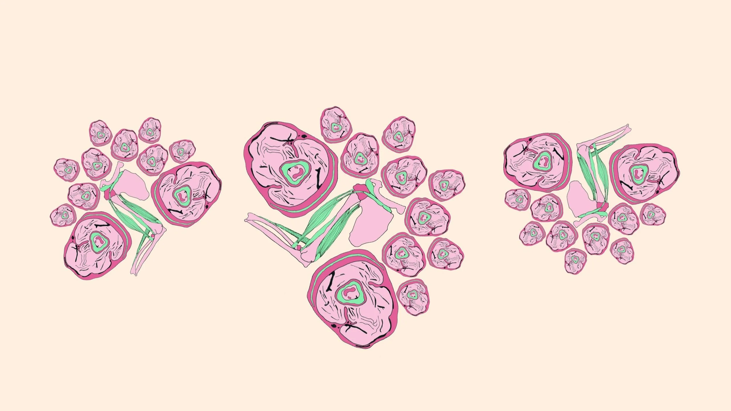 Skeletal System Frames -digital drawings, acrylic paint, polymer clay, dimensions variable